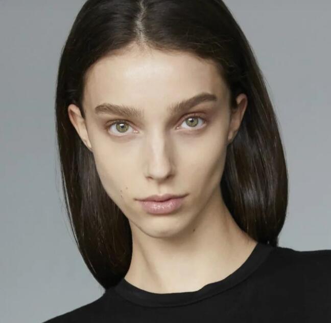 皮肤白皙绿眸,直鼻深目,面部轮廓清楚似雕塑作品,让她的美是多少有一些雌雄难辨,像艺术品。