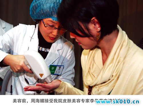 周海媚在做电波l皮的皮肤测试