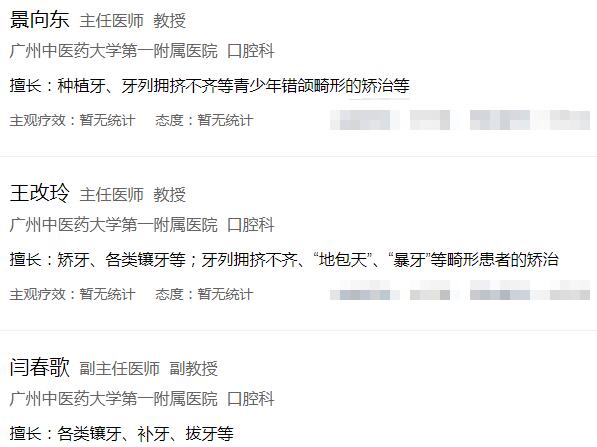 广州中医药大学第一附属医院口腔科医生名单:
