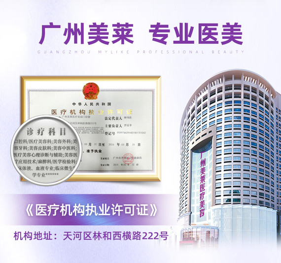 广州美莱医疗美容门诊部:在当地是一家作为医学美容集团旗舰店医疗机构之一,不仅内部环境优雅舒心,而且提供的各项医美产品和医疗设备均从规范渠道引进,包含眼部整形以及面部抗衰等多个方向,始终遵循于现代的医疗准则,广州天河区医美行业知名度较高,专注于品质化的医疗服务。