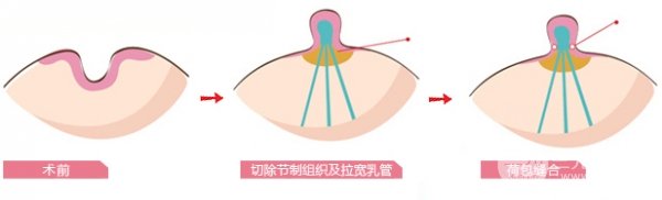 1,支架法乳头退缩矫正手术:将乳头通过电线固定到外支架上,持续牵引后延长乳头,GET矫正乳头缩回的目的。该方法不用做皮肤切口,不要破坏乳房管,可以保留乳房功能,复发率低。适用于轻,中,重度求美者的抑郁症状。
