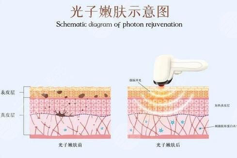 光子嫩肤的原理主要运用专业仪器发出的宽光谱,彩光穿透皮肤表皮层,直接作用在皮肤基底层,这种特定波长能够快速把皮下色素组织进行分解,被分解的色素组织会随着身体新陈代谢和淋巴系统逐渐排出体外,同时还能够刺激皮肤深层胶原蛋白组织增生。从而可以起到美白嫩肤的作用,还能够淡化皮肤上的斑点,针对于皮肤上的毛孔粗大,也可以得到有效改良。