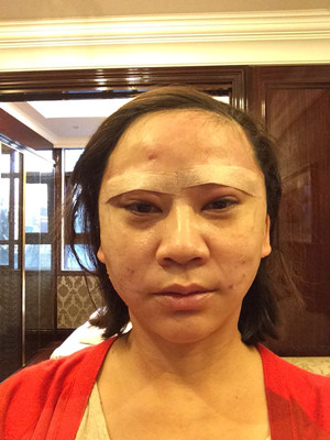 早上起来眼睛还是会肿,但淤青没有了。眉毛处还清晰可见刀口,皮肤好痒。医生建议第(一)个月每晚带头套,但是好热啊,这两天睡觉自己梦里都掀了。
