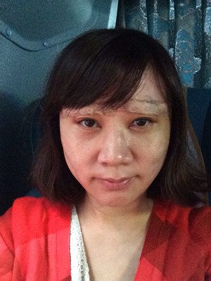 今早好好的热敷了下眼睛,觉得眼睛肿的情况和黑眼圈好不少。嘴也可以咧开大笑了,按脸蛋的异物感也几乎没有了。不知道黑眼圈是肿胀向下移恢复的原因,还是提升后脸小了就显得很严重的原因。