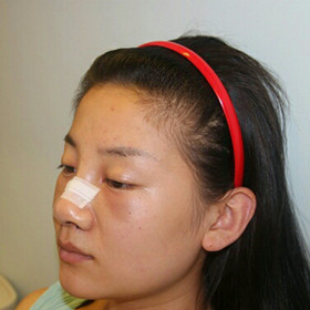 假体隆鼻术后天开始,鼻梁部位、眼睛及眼睛的下面都有了肿胀,都说术后24小时是肿的时候,不怎么痛,只是不能用力的去拉扯自己的鼻子,比如大笑和打喷嚏都需要小心一点,我还是按照医生的交待,每天吃四次消炎药。