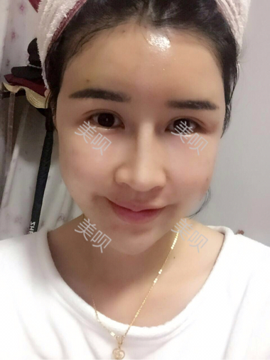 这个刚做了填充的第二天,脸部肿得不得了,肿得是亲妈都不认识了,我是在大腿进行抽脂来填充的,现在大腿抽脂的地方还是比较痛,昨天晚上睡觉简直就是折磨,睡不好。医生给开的消炎药都在按时吃。