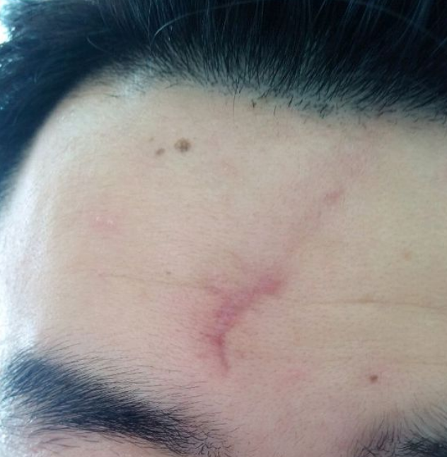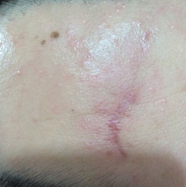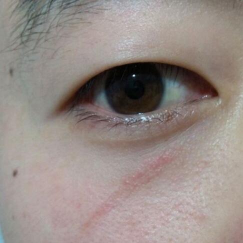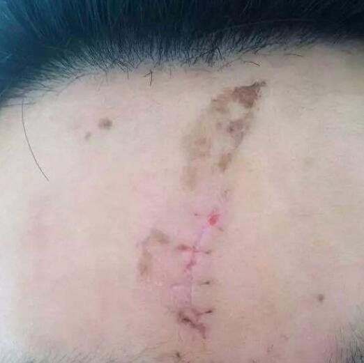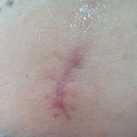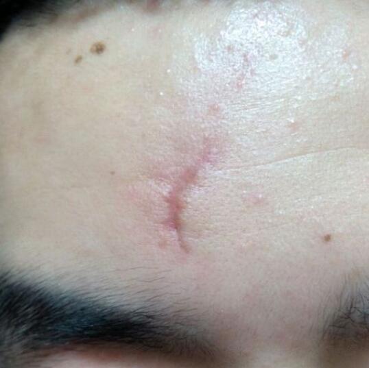 小时候因为调皮,不小心摔了了伤口在额头上,同时在眼睛下方也有一道伤口,待伤口痊愈之后却留下了一道深深的疤痕,然后也就是这个疤痕就却跟了我十几年,让我觉得很难看,较为的想消掉这道难看的疤,期间用过很多祛疤产品均无果,较终我还是决定到美容医院做手术祛疤靠谱,这个是刚手术了的照片,还有缝线。