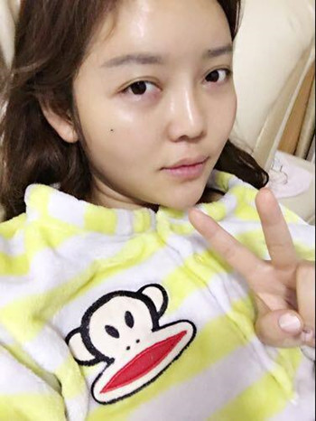 手术后的第五天,消肿了不少了,脸上的果在慢慢出来了,摸了摸还有一点硬,不知道什么时候才会变软啊。今天穿了我喜欢的大嘴猴睡衣,是不是看起来也是萌萌哒!