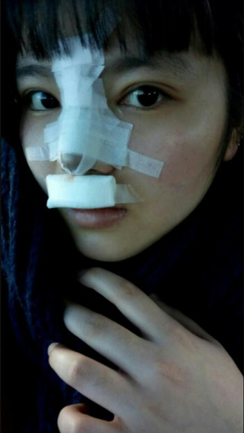 手术后的第七天了,今天去拆线了,心情很愉悦,请忽略我的油脸和大油头,手术后的前几天都会死不能洗脸洗头的,连我也只是用湿纸巾轻轻的擦,鼻子不问就不干擦的,幸好没有长痘痘!
