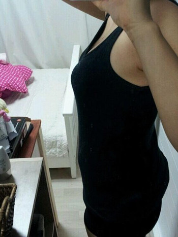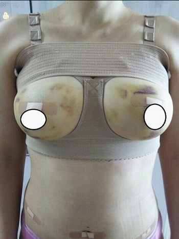 现在是手术后一个多月了,今天吧塑身衣脱了,换上专用的内衣,看吧有了事业线了,胸部也大的也很自然,现在手感开始变好了,脂肪吸收变少了,刚开始还担心会不会被吸收完,现在完全觉得是多余的!