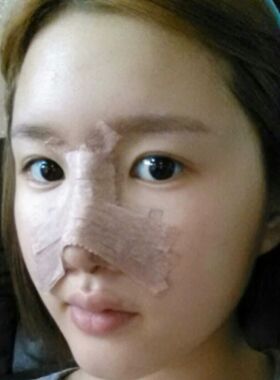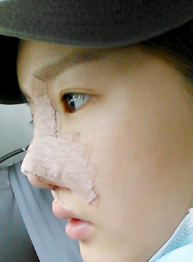 鼻子做完之后贴得很严实,鼻孔里面塞了小棉球,有一点出血,不过还好鼻子没什么痛感,只是觉得有一点涨,耳朵的话就疼一些了,也不知道为什么耳朵会比鼻子还疼。