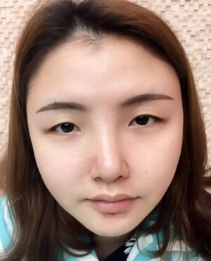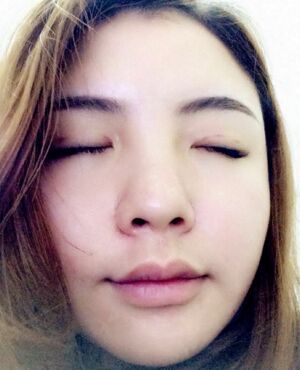 术后两个半月,闭眼已经看不到什么痕迹了,还去种植了睫毛。
