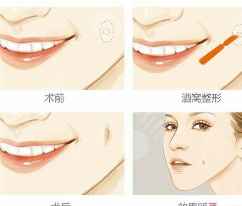 酒窝是嘴角边,颜面部的肌肉相互牵动形成的现象。制作酒窝的时候,去除嘴里一部分的组织,使皮肤内侧的肌肉粘连,笑起来的时候会出现酒窝。